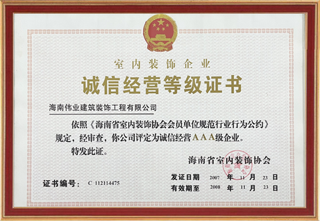誠信經(jīng)營AAA級企業(yè)